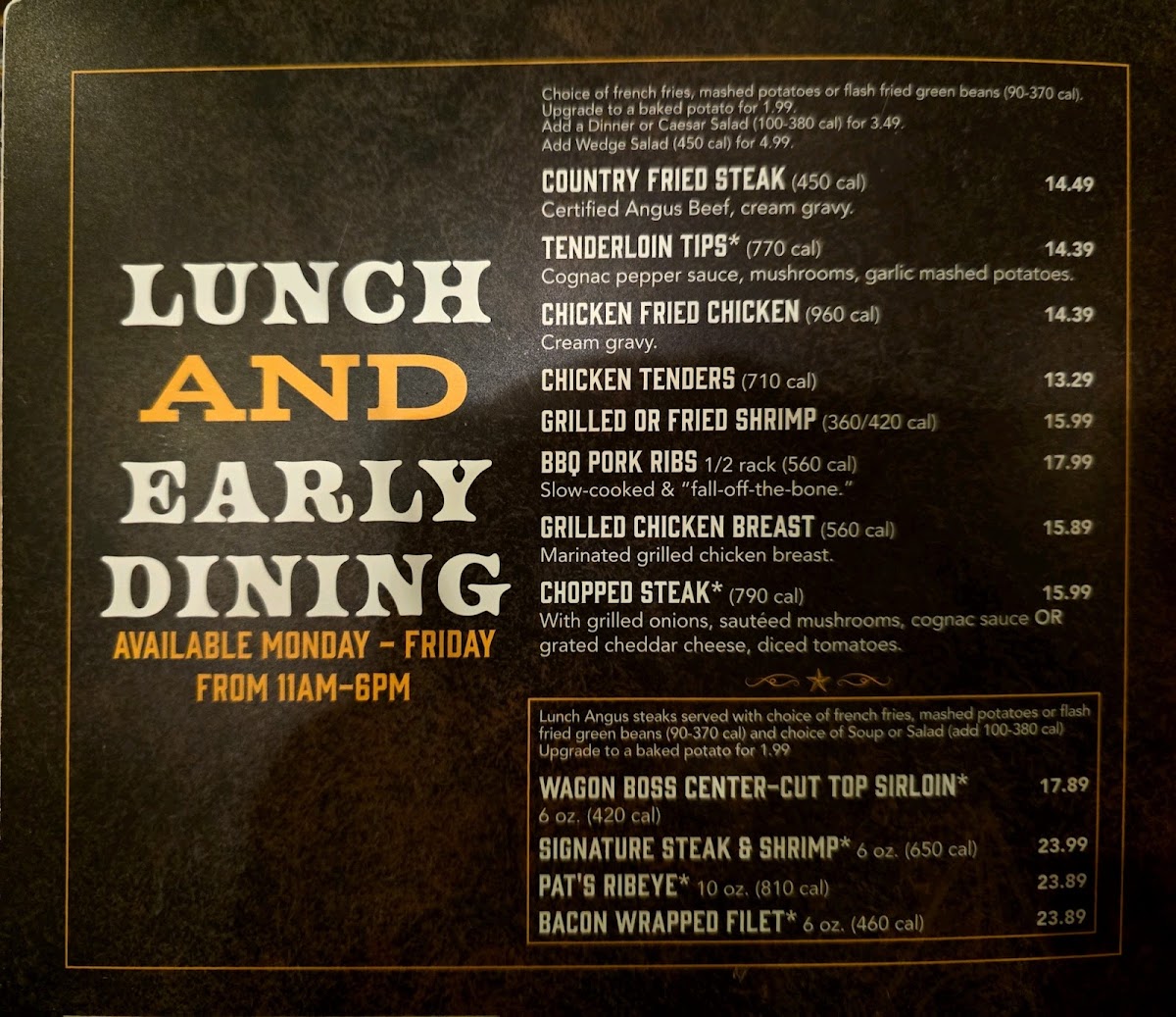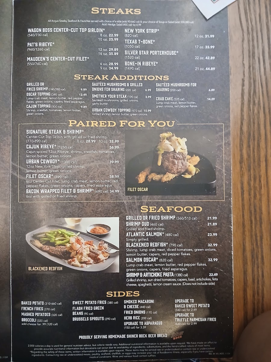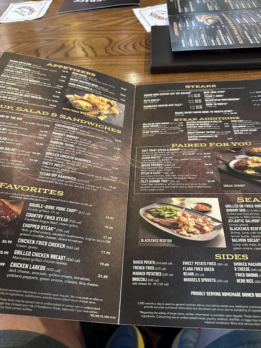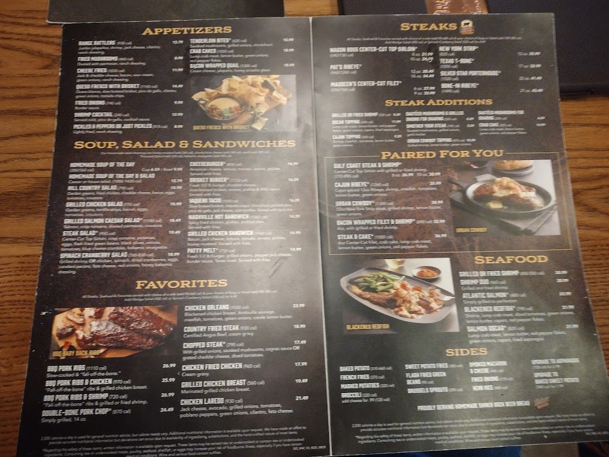 Beyond steaks, favorites like the Chicken Fried Steak and Western Chopped Steak offer hearty, comforting options that highlight the brand’s dedication to quality and tradition. The DoubleBoned Smoked Pork Chop, enhanced with savory bacon jam, adds a touch of gourmet flair. Customers consistently praise the attentive service and warm atmosphere, making each meal memorable.